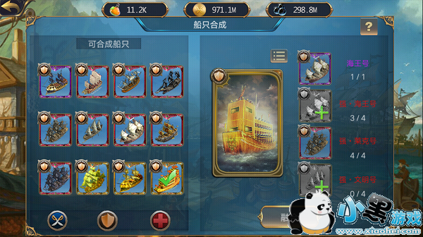 《海岛战争》作为一款以船为主的游戏,其中有着大量不同的战船,根据品质的不同,获得的难度也会提升。但是,这并不意味着想要获得高级船只,就要花费大量的珍珠来碰运气召唤,在船坞之中,你可以用多余的低级船只,来合成高等战舰。