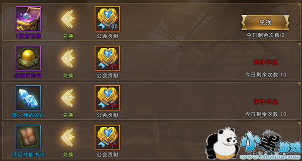 四、公会商店:公会商店开启之后,所有成员均可使用公会贡献在商城内兑换自己所需要的道具,随着公会商店等级的提高,兑换所消耗的公会贡献也会相应减少