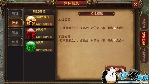 道士职业相比其他两职业来说,命中率是较低的,但是被动技能“精神力战法”的被动技能补足了道士命中率底的问题。让这个职业更加的攻防均衡。