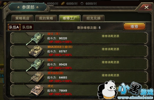可以消耗资源一次性将阵上的坦克修好,但是有相应的维修次数限制。
