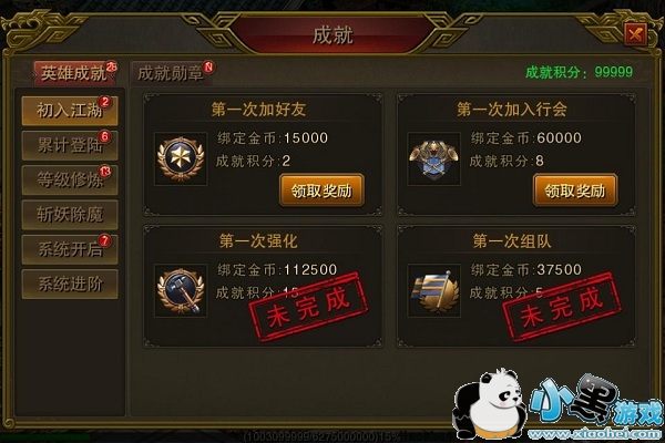 累计足够的成就积分就可以换取强大的成就勋章了!高等级的成就勋章不仅仅是荣誉的象征,更可带来丰厚的属性加成。
