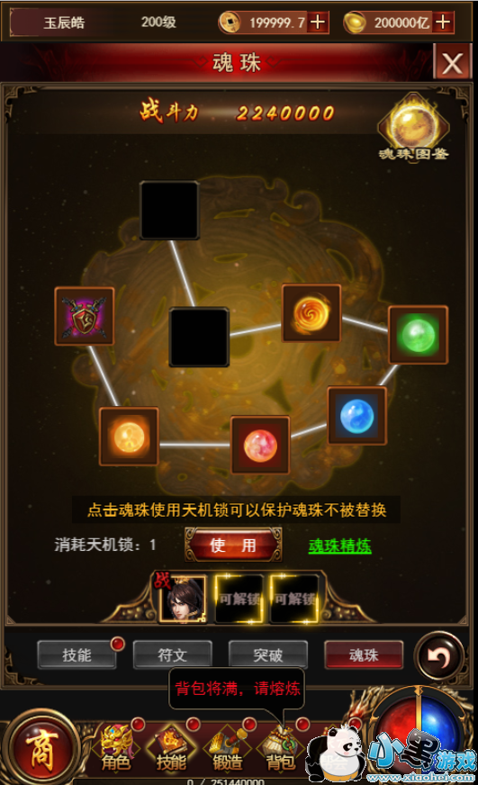 魂珠孔未全部装备时,每次使用魂珠时,有几率会替换的已装备的魂珠,可以使用天机锁道具保护魂珠不被新魂珠替代;