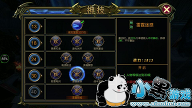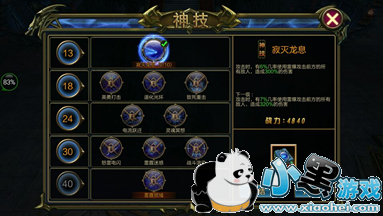 2. 另外18、24、30、40级时,每层只能激活一个神技。