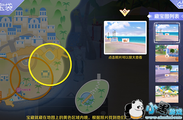 点击前往参加,会弹出社区几个位置的地图,小主人们就会自动前往目标区域完成挖宝,若是无法自动寻路到达目标区域,需要小主人们对社区地图有一定的了解程度,这样可以快速找到挖宝地方。注意地图上挖宝地区的提示,小主人们可以选择自己认识的一个位置,藏宝图就在上图的黄色区域内。