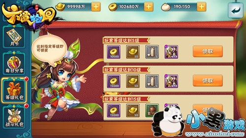 点击活动选项,会出现等级礼包、战斗礼包等多种方式让你领取元宝哦,上线需要多关注可以领取的奖励。