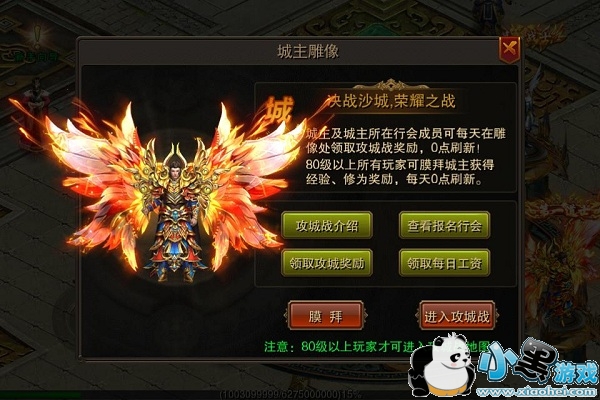 (2)获胜行会成员每天可在皇城NPC城主雕像处领取攻城奖励,每天仅且只能领取一次。