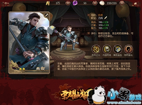 别看《荣耀战国》武将初始资质分为2、3、4星,其实很多2星武将也是相当强力的,升星之后在某些方面完全不输于四星武将哦!例如游戏里堪称“新人之友”的乐毅,作为刀兵型武将本身就有不错的防御属性,小技能自带范围眩晕和双抗提升,奥义在造成伤害的同时还能治疗周围队友且施法期间无敌,堪称前期最完美的刷本武将。