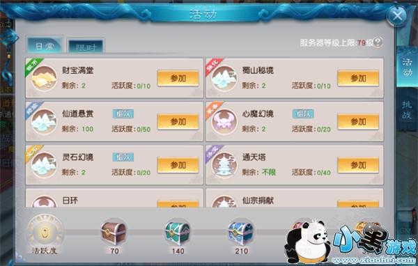 每日游戏过程中,除了必做的活动外,限时活动也要记得参加哦,世界领主、上古战场、蟠桃盛会、封魔殿等,只要参与就有奖励获得哦~道具、经验奖励可一点都不差的,如果你是千里挑一的勇士,释放你的风采,在显示活动中获得名次,奖励拿到手软哦。