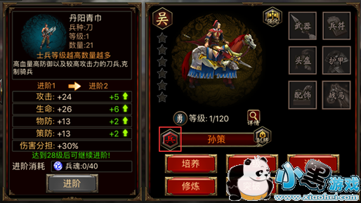 游戏里玩家通过攻打名将和联盟商店可以获得兵魂,兵魂可以用来升级武将兵种,士兵可以为武将分担伤害,升级后兵种属性也会提高。