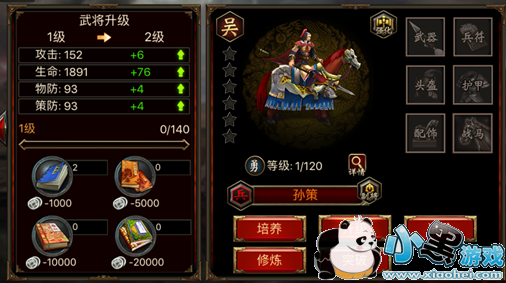 首先是升级,武将升级后三围属性都有一定程度的增加。在三国群英传里,武将升级要通过吃经验书来完成,攻打副本只能为主角提供升级经验,因此大量的经验书是武将升级的唯一方法。当玩家更换武将时,可以将不要的武将进行重生或者分解,系统会返回武将升级的经验书,因此不会浪费哦。有了经验书就给武将升级吧。升级是快速提升武将战力的途径之一。