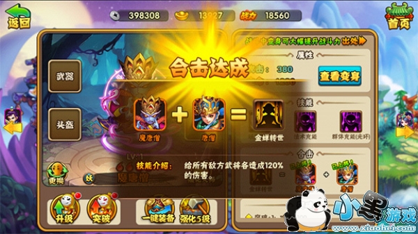 第一点就是,一定要练合击武将!合击武将!合击武将!重要的事情说三遍。合击武将的技能攻击效果比起一般武将要高很多,性价比也很高。一般如果抓到了一个好的时机,一个合击技能就能造成清场效果。