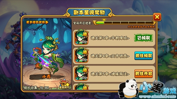 后续的话还是以凑齐橙将为目标了。还好橙卡基本都可以靠刷副本来获得碎片。另外每一章尽量都达到3星,一方面可以点将星护脸,另一方面每章的三星宝箱会给不少橙将碎片,打到第9章就能凑齐一张小青。