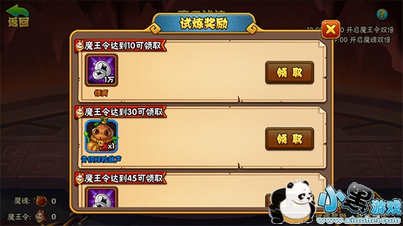 通过挑战魔王,可以获得“魔王令”。当魔王令累计到一定数量的时候就可以领取对应档位的奖励了。