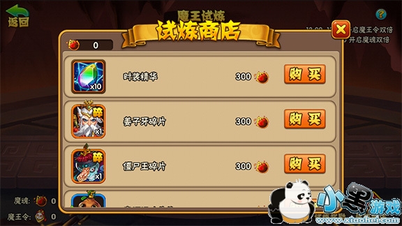 魔王试炼会刷出若干只怪物,来让你挑战。每天能攻打10次,但是你可以用元宝购买额外的挑战次数。