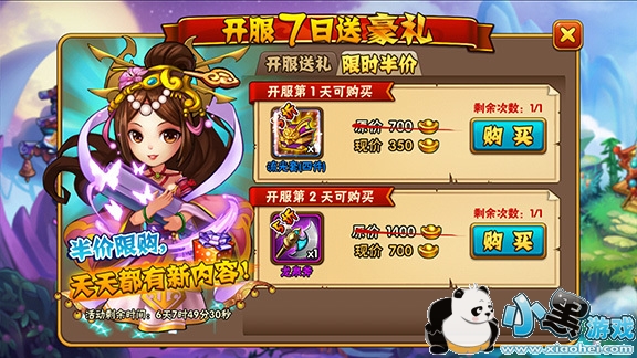 七天登陆第一天的半价蓝色套装,建议买一下,对于前期战力提升作用很大。副本宝箱也会给装备,加上活动里领的,前期装备是不缺的。培养还是以橙将为主,蓝装要穿给橙将,尤其是小龙女,五体法术前期推图很好用。