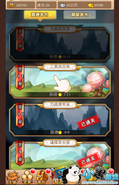征战:简单说就是副本,或推塔,前期征战关卡每个章节有三个关卡,从十一章开始有五个关卡,后面依次增加,推搭可以获得经验、银两及一些道具奖励,积累通关星星还可以开启宝箱。当然最主要的是可以获得大量经验来升级,小编建议,使用炮手尽量推塔,当推不动了,提升武将,继续推,一直推到实在真的推不动了,开始扫荡,前期可以将部分包子用来扫荡,提升等级及战力了继续推塔,推不动了,在扫荡,以此类推,尽量争取推高级的塔,越高级,经验奖励越丰厚,升级也越快。
