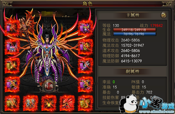 “战斗力”越高,则整体实力越强。战斗力共由9项主要构成,对战斗力的影响从高到低依次如下:强化、洗炼(效果很直接)、套装效果(整套属性伤害爆炸)、神翼(翅膀相对比较良心刷怪可以掉材料)、装备(跟据自己能力搞)、高级技能(只能靠刷BOSS获得)、勋章(非常长线的功能,属性收益蛮高,花点钱可以升的快些。),“人物”随着等级走,无法自己调整。下面来介绍下“人物”属性: