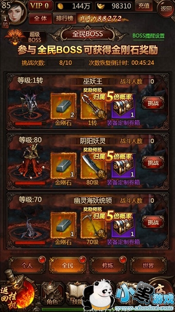 《传奇世界正版H5》的全民BOSS玩法中新增了“装备定制券箱”作为奖励,玩家可以选择难度适中的全民BOSS进行挑战,在击败BOSS之后就有机会获得装备定制券箱。