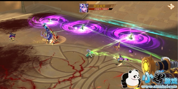 降魔之咒(大范围AOE):阿古的主要技能,随机选中三名玩家。对其施加一个紫色的魔咒圈,7秒左右会产生爆炸,造成大量伤害,CD20s。如果玩家的血量不是很多,很可能会直接被秒掉。需要注意的是,紫圈尽量不要重叠,免得连累他人。
