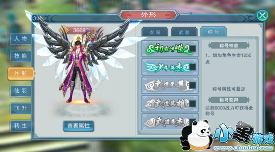 3、当玩家满足一些特定的条件时,就可以获得特殊称号。称号种类众多,并且称号也可以增加角色属性。