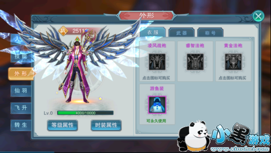 1、外形总共分为衣服时装、武器时装和称号系统。