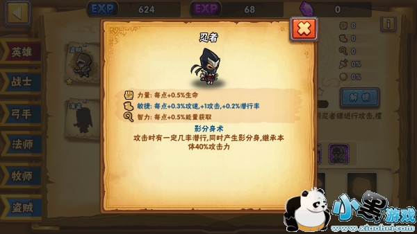 忍者是与刺客稍微有点不同的分支,主要输出来源于本体与影分身的写作,因为潜行会大幅增加攻击力,配合影分身在盗贼系里甚至是输出最高的。弹射属性则决定了适合对人群进行输出,除了配合蛮锤与冰法之外,在队伍前面与转角处都是不错的选择。
