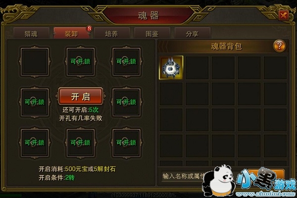 魂器获得后可进行装卸,每个人最多可以装8枚魂器,开锁需要消耗解封石: