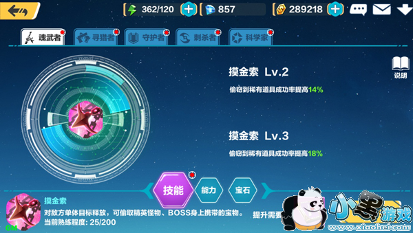 养成系统按照英雄职业划分:魂武者、狩猎者、守护者、刺杀者、科学家。每个职业都有对应的超级技能。魂武者对应摸金锁、狩猎者对应枪炮交响曲、守护者对应圣洁庇护、刺杀者对应瓦尔哈拉号、科学家对应淫灭空间。超高的技能爆发伤害,可以打出最高的秒伤,通过每一职业对应的手册增强技能,从而养成完美技能。