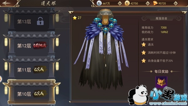 《浩天奇缘2》通天塔首次通关每一层,都可以获得对应奖励。在限定时间与血量的条件下通关,还能获得三星评价。此外,玩家还可以重置挑战进度,并使用扫荡功能,从而获得每日奖励。
