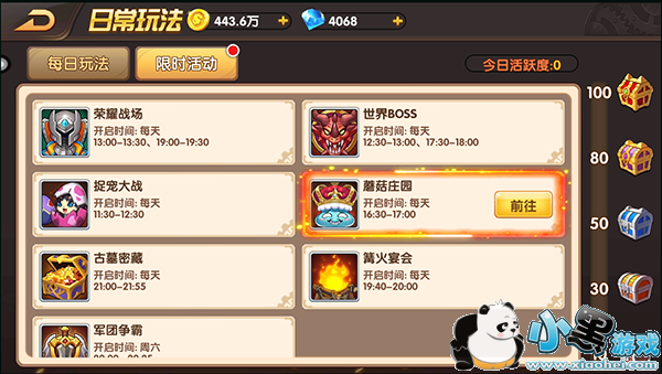 1、点击前往日常玩法界面中限时活动的蘑菇庄园活动