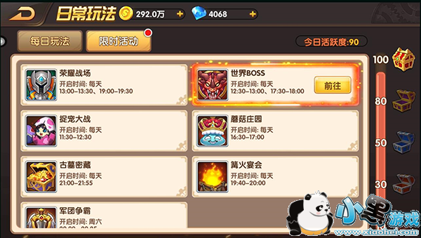1、点击前往日常玩法界面中世界BOSS玩法