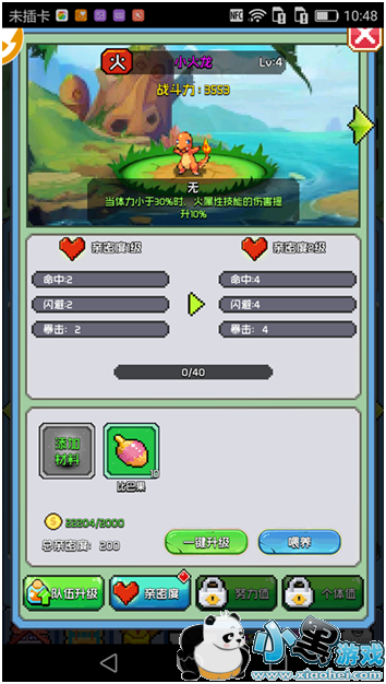 精灵的亲密度影响精灵的战斗属性,亲密度越高,提升的属性就越强。提升亲密度需要耗费金币和比巴果,这些可以在冒险中获得。