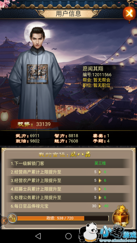 其实前期从八品到正八品只是一会儿的事,真正难的是往后的爬升,怎么升到正七品开通新功能、怎么当上聂政王。其实有以下获取政绩的途径,我们先来说说常见的。
