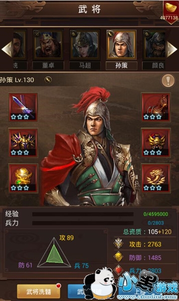 孙坚是一位基础资质105的步兵武将,步兵型武将有着十分均衡的三围(即攻击、防御、兵力)。孙坚的基础三围是89/75/64,这个三围数值在顶级武将中是十分不错的。在拥有十分不错的防御力和兵力的同时孙坚是拥有89的顶级攻击力,这让孙坚拥有成为了顶级的步兵选择。他不向马超那样只能极限的输出,他的优秀三围可以支撑他一挑三战胜对手。孙坚在顶尖土豪手上可以发挥出最大的威力,他绝对是一名可以一打三的顶尖步兵武将。