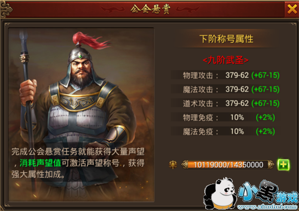 声望等级除了提升属性外还可以获得相对应的称号,如下图。称号根据当前所取得的声望等级来获得,声望等级越高得到的称号也越高级,当然所附带的物攻、法攻和免疫效果也越好。裁决里的免疫属性是根据百分比增强的,所以提升声望等级对于我们自身实力的增强还是很重要的!