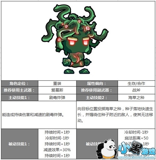 被动技能选择方面,建议优先选择两个技能的冷却时间和持续时间,因为毕竟海草哥是以控制闻名的,一级和五级点海草之种,二三四级点剧毒炸弹。
