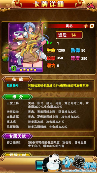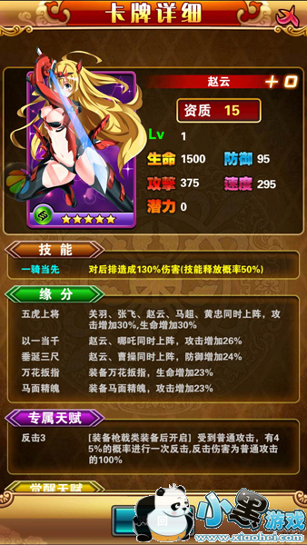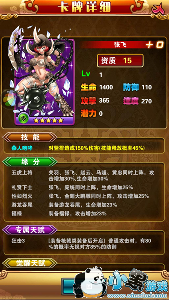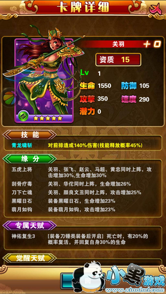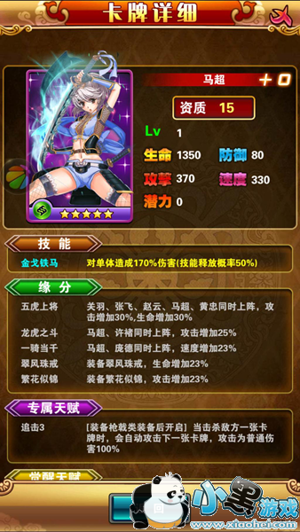 高能提示:本阵容只适合R玩家,非R玩家若想用此阵需要漫长的等待。推荐上阵人物:关羽、张飞、赵云、马超、黄忠小伙伴:颜良文丑、夏侯渊、许褚、庞德、金翅大鹏雕等等。