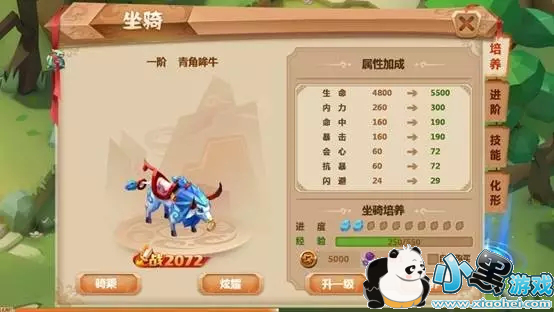坐骑培养,这里消耗的铜钱没得说,是不能省的。