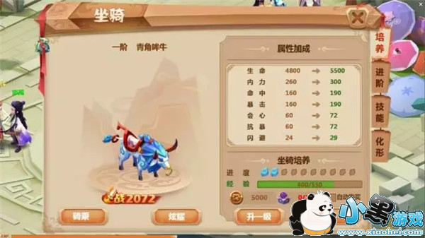 武器升级后,坐骑升级也是提升战力的很重要一部分。相比武器升级,坐骑培养的材料获取方式则容易的多,所以只要在急于升级时少量购买就可以了。