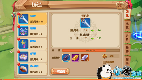 装备的强化等级升级时,有一个经验值,经验值升满后则可以到下一个等级。而增加经验的方式则是消耗材料和铜钱,小编来说一说这材料的区别。材料一共分为三种,分别为:寒铁、冥铜和秘银,每种材料提供的强化经验是不同的,寒铁最少,冥铜适中,秘银最多。每次升级时,都会有一定几率产生暴击,可以获得额外的经验值呢,大家多多洗洗手来升级,说不定能获得成倍的经验!