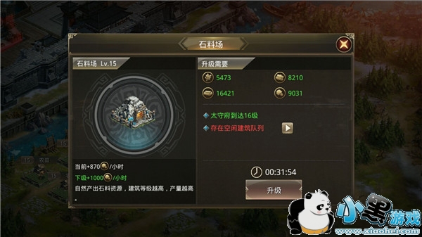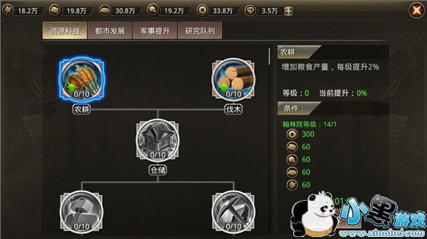 简单来说就是主城内的资源设施会随着时间的流逝自动生产资源,我们需要做的就是通过升级这些设施来加快资源生产的速度。不过我们也要注意一下仓库的等级,毕竟我们晚上睡觉时一般会下线8小时左右,如果仓库等级过低的话,很容易资源生产达到上限造成浪费。另外翰林院的科技研究里也有很多关于加速生产资源的科技,可以选择优先升级它们。