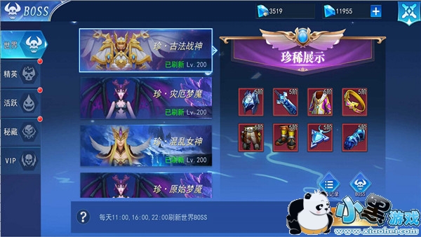 1、每天11:00、16:00、22:00刷新世界BOSS;