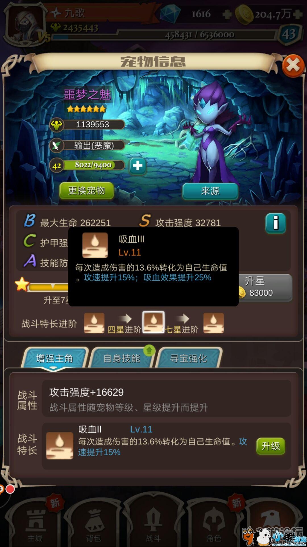 首先紫宠里平民都会有的恶梦之魅,建议先升到7星,它既提供了输出又提供了续航
