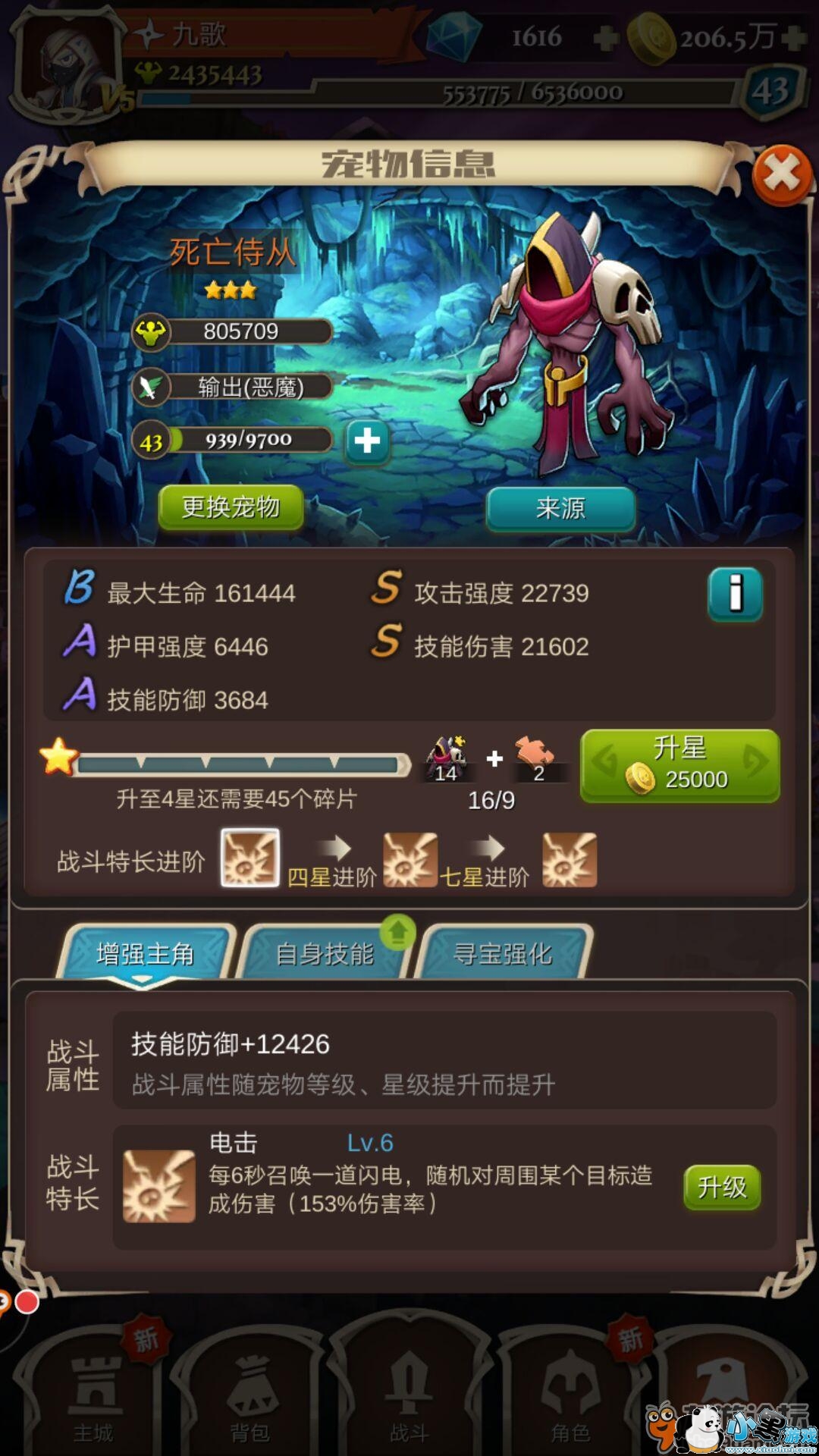 可以看到7星的它提供了很强力的帮助,对于我们攻速闪避流来说很重要。接下来是送的橙宠死亡侍从