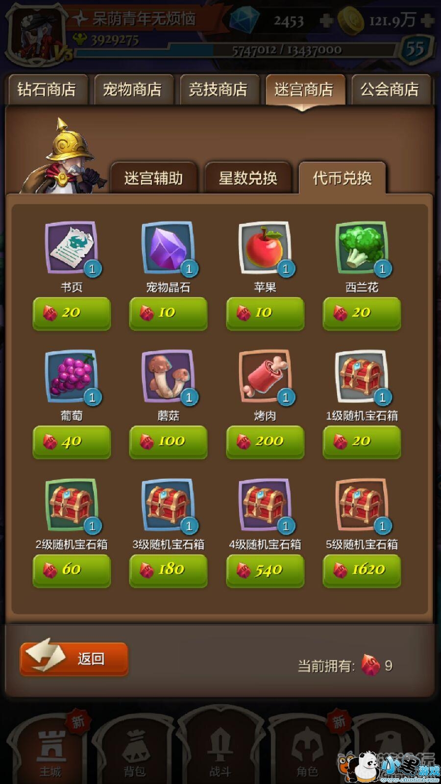 开了迷宫后最好在等迷宫收益里上面那排进度都拿光了再结算,前期迷宫币主要买宝石箱子,这样升战力快,等后面基本都用上6级宝石了就可以买技能石什么的了。