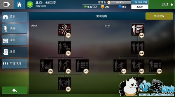 每名玩家拥有两名球探可分别帮助你寻找不同位置的球员。