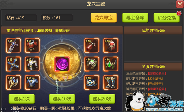 最核心的一点,想要迅速提升等级和战力,拉开和其他人的距离,那么一定要多去龙穴宝藏寻宝,装备多,经验更多。开服的前三天龙穴宝藏产出的超级经验果一个就有1亿经验,还有大量多余装备可以通过吞噬来获得经验,升级杠杠的。最主要的是寻到一身高转装备,瞬间造就一个超级高手,吊打其他小五渣。而且寻宝是有积分的,如果没有寻到想要的装备,也是可以直接用积分来换装备,还可以换其他的珍贵道具,也是比较有用的,缺金币强化装备的时候都可以直接来这里换金币箱子。