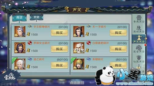 游戏商店中,平民玩家建议体力丹、耐力丹购买前几天买满次数,关系到游戏前期升级进度,消耗也不高,而后几天可以各买五次,在消耗元宝数量较少的前提下可完成每日任务获得经验和道具奖励。同时注意不要将元宝用于购买角色,一个完整的角色需要大量元宝,不划算,不如通过声望慢慢兑换。
