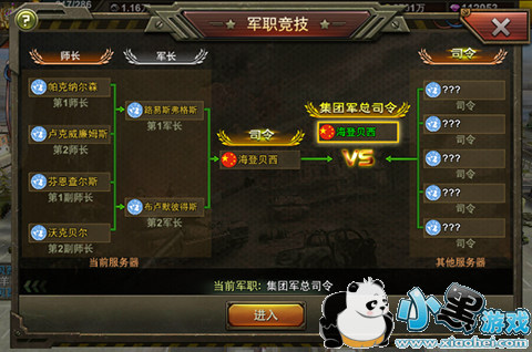 军职竞技:PVP系统,玩家可以通过每天挑战比自己排名高的玩家来提升自身的排名,排名越高每天发送的奖励越好(奖励包括:声望,竞技币,钻石,历练证明)。