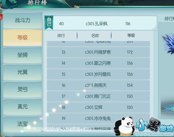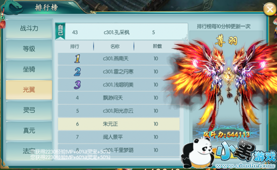 光翼榜显示全服仙宠战力排行,排行第一的会获得称号“凌空绝顶”